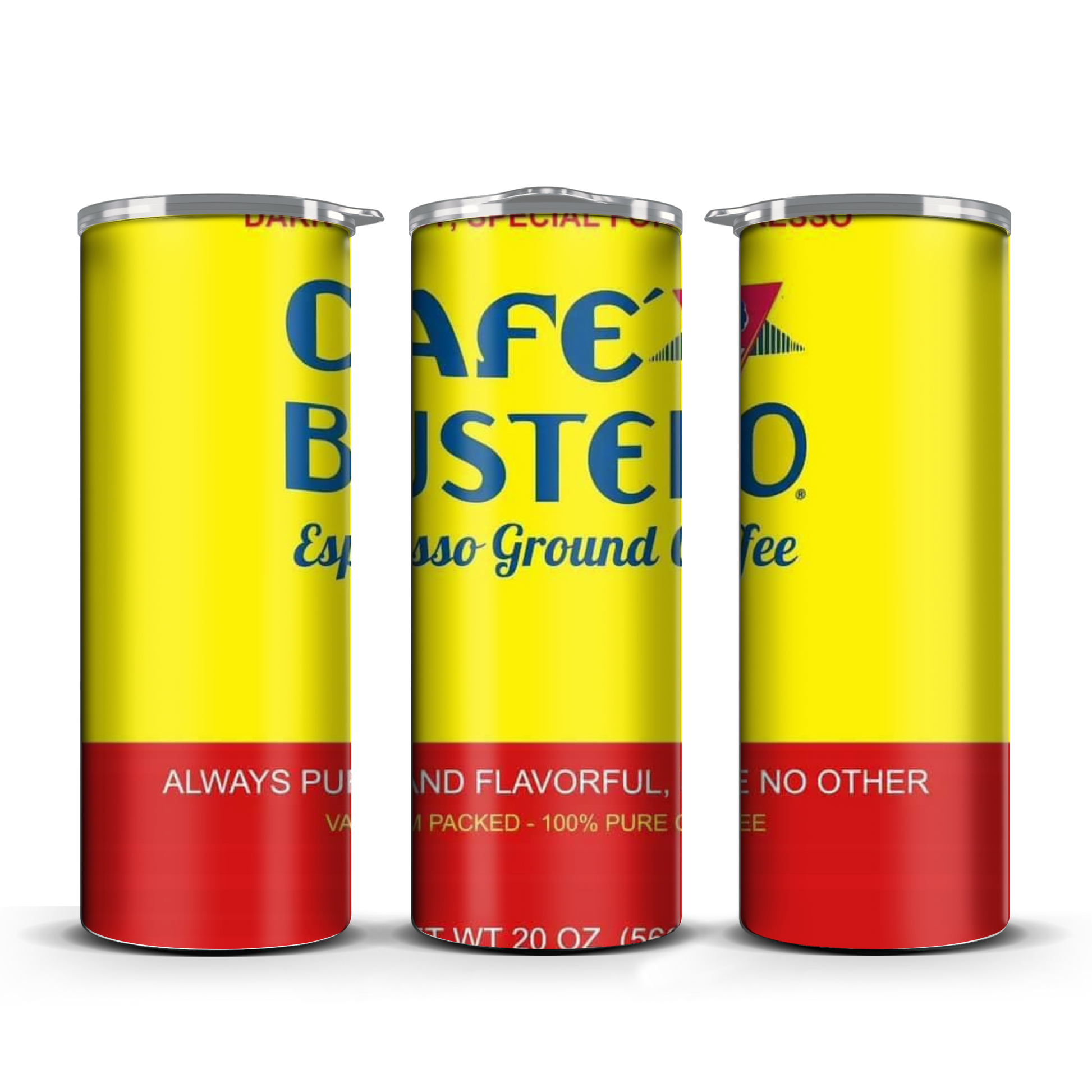 Experience the bold and rich flavor of your favorite Cafe Bustelo coffee on-the-go with our 20oz skinny tumbler! Keep your coffee hot and secure with the included straw and lid. Perfect for the ultimate coffee lover!