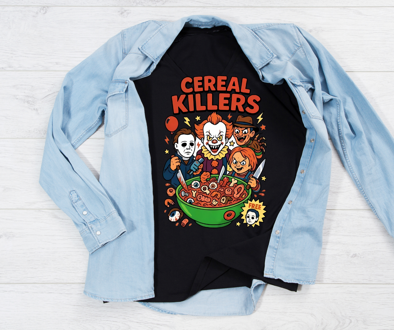 Start your day with a spooky twist in the Cereal Killas tee. Made from soft cotton, this playful t-shirt combines comfort with fun cereal-themed designs that make it your new favorite morning wear. Perfect for adding a quirky edge to your casual style while keeping cozy all day long.