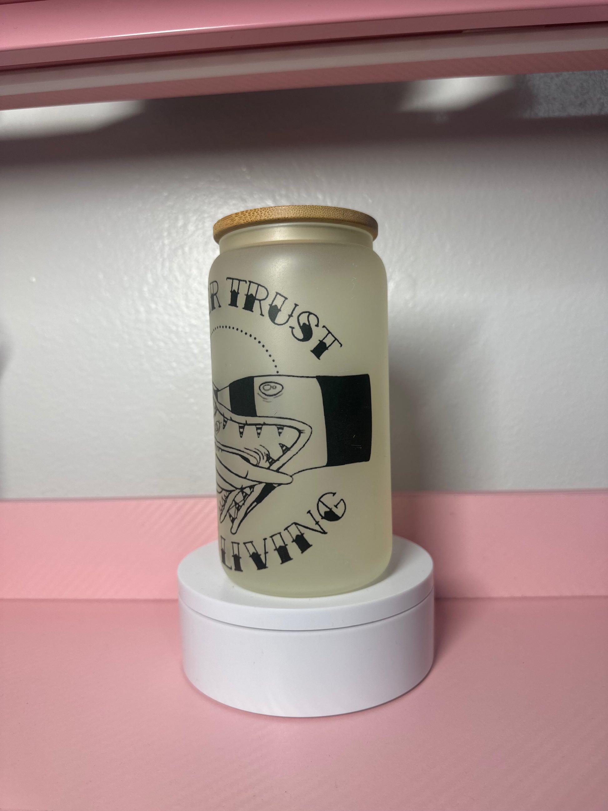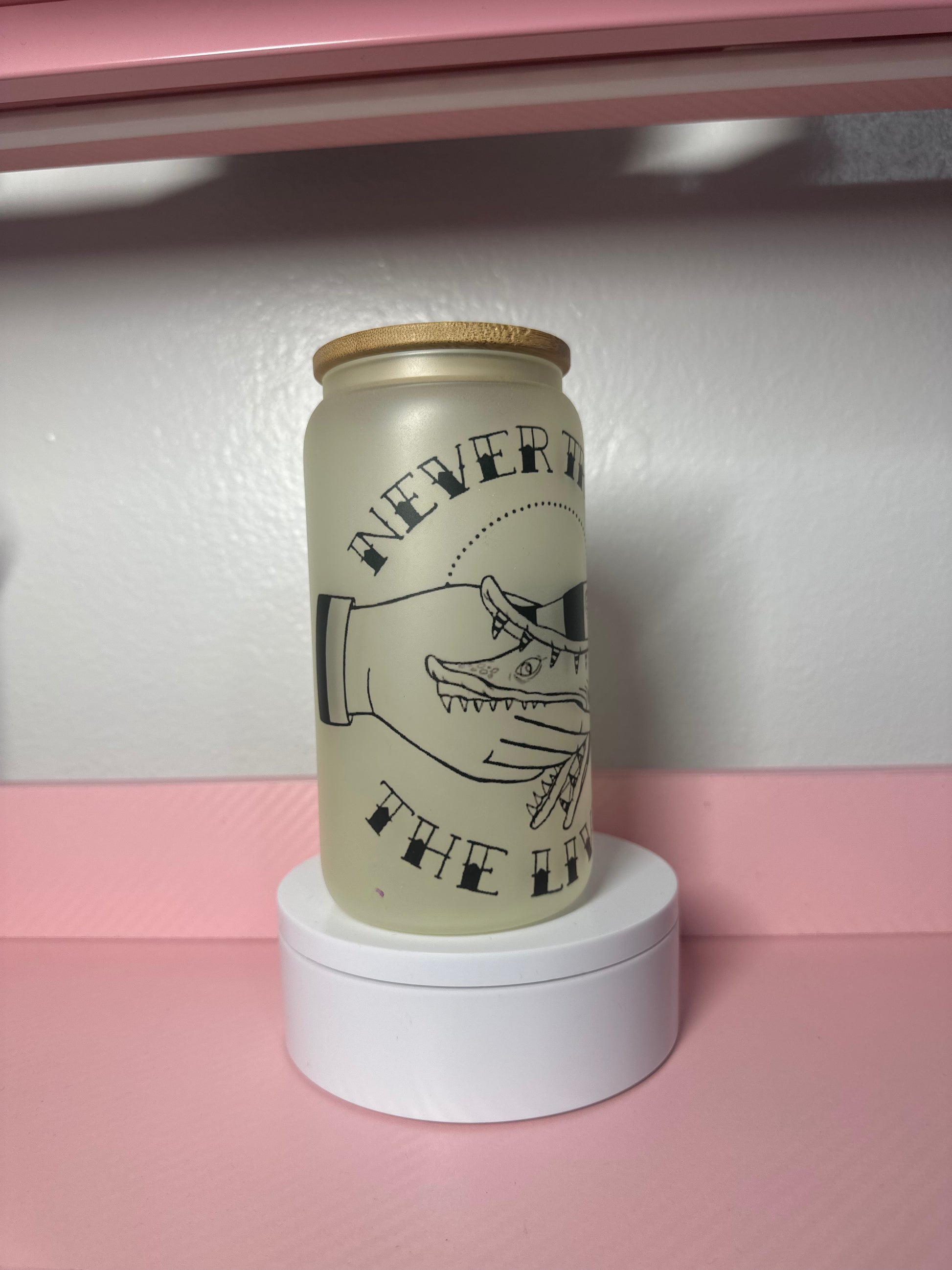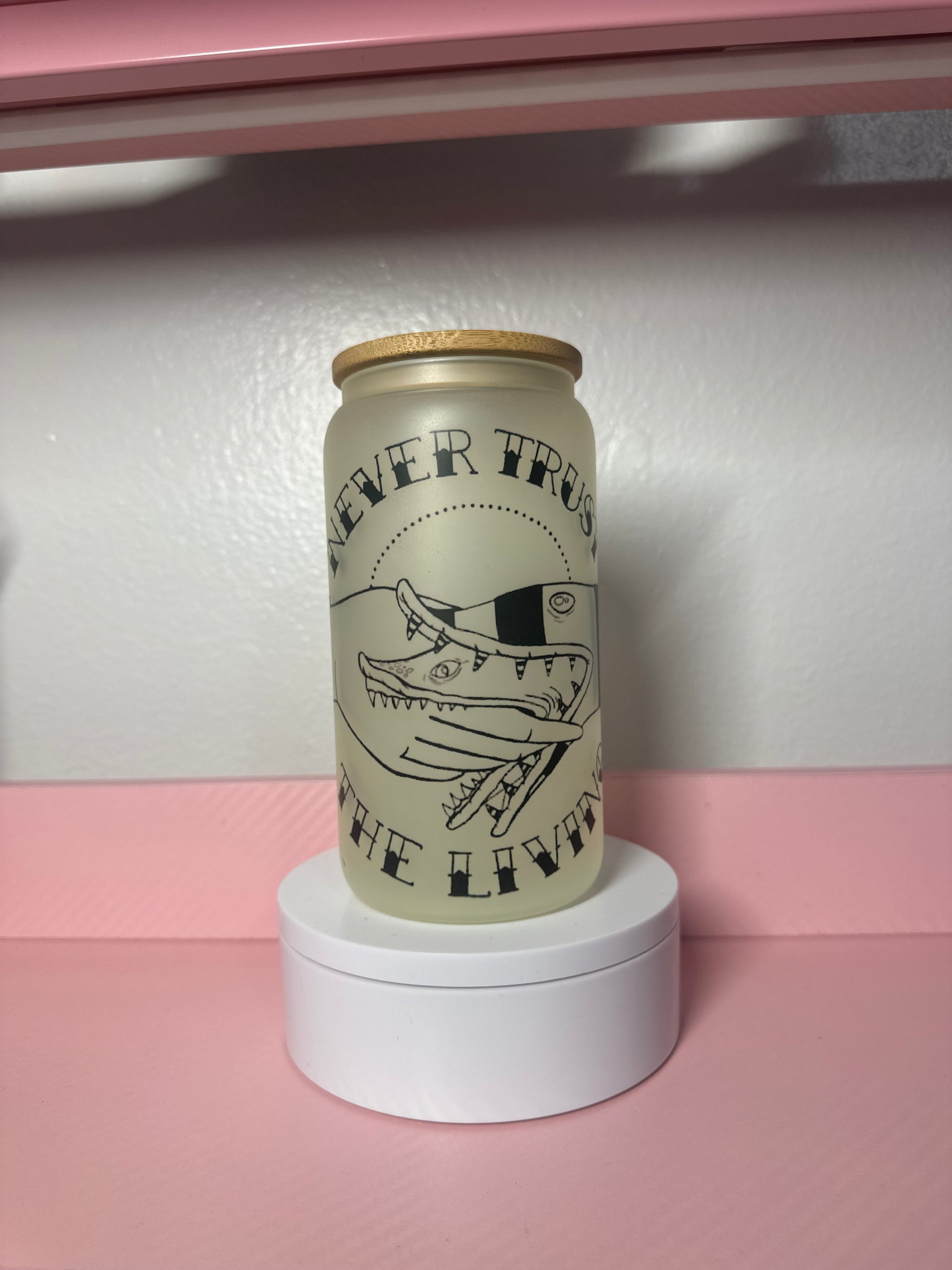 Chill out with this edgy glass cup featuring the bold "Never Trust the Living" design. Perfect for cold drinks, iced beverages, and anyone who appreciates dark humor. The durable glass construction keeps your drinks refreshing while the striking graphic makes a statement. Whether you're enjoying iced coffee, lemonade, or your favorite cold beverage, this cup delivers style with every sip.