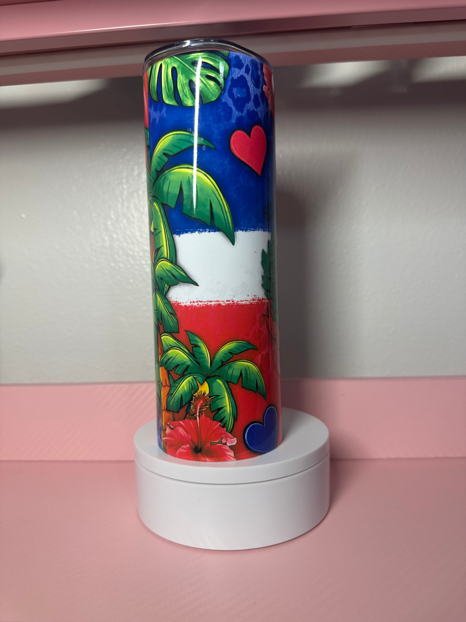 Celebrate your Dominican pride with this vibrant 20 oz tumbler. Perfect for keeping your favorite beverages hot or cold throughout the day, this durable drinkware features bold Dominican Republic design elements that showcase your heritage. Whether you're at home, at work, or on the go, this tumbler is an ideal companion for coffee, tea, water, or any drink of choice. A meaningful gift for anyone who loves the Dominican Republic or wants to display their cultural connection in style.