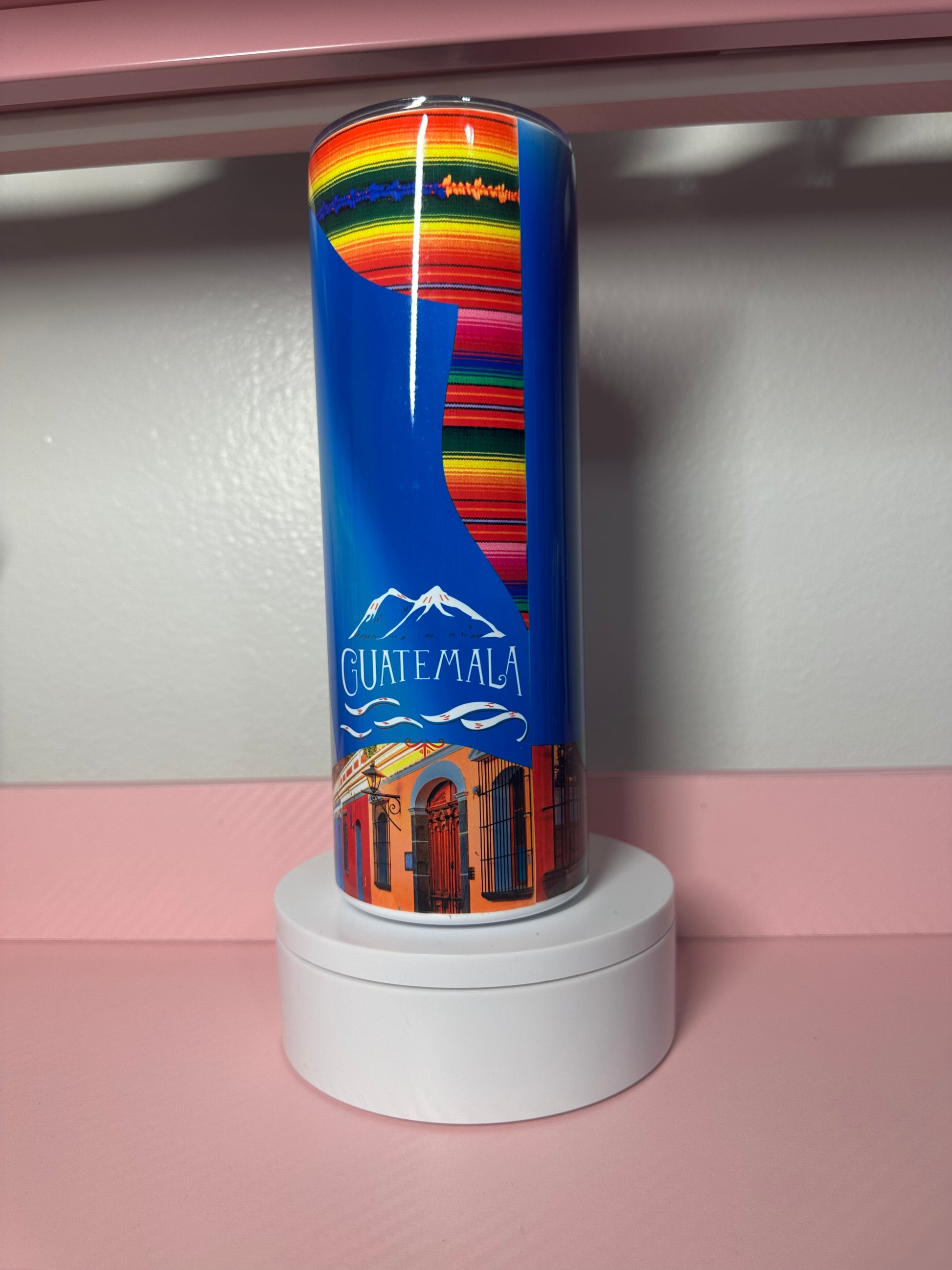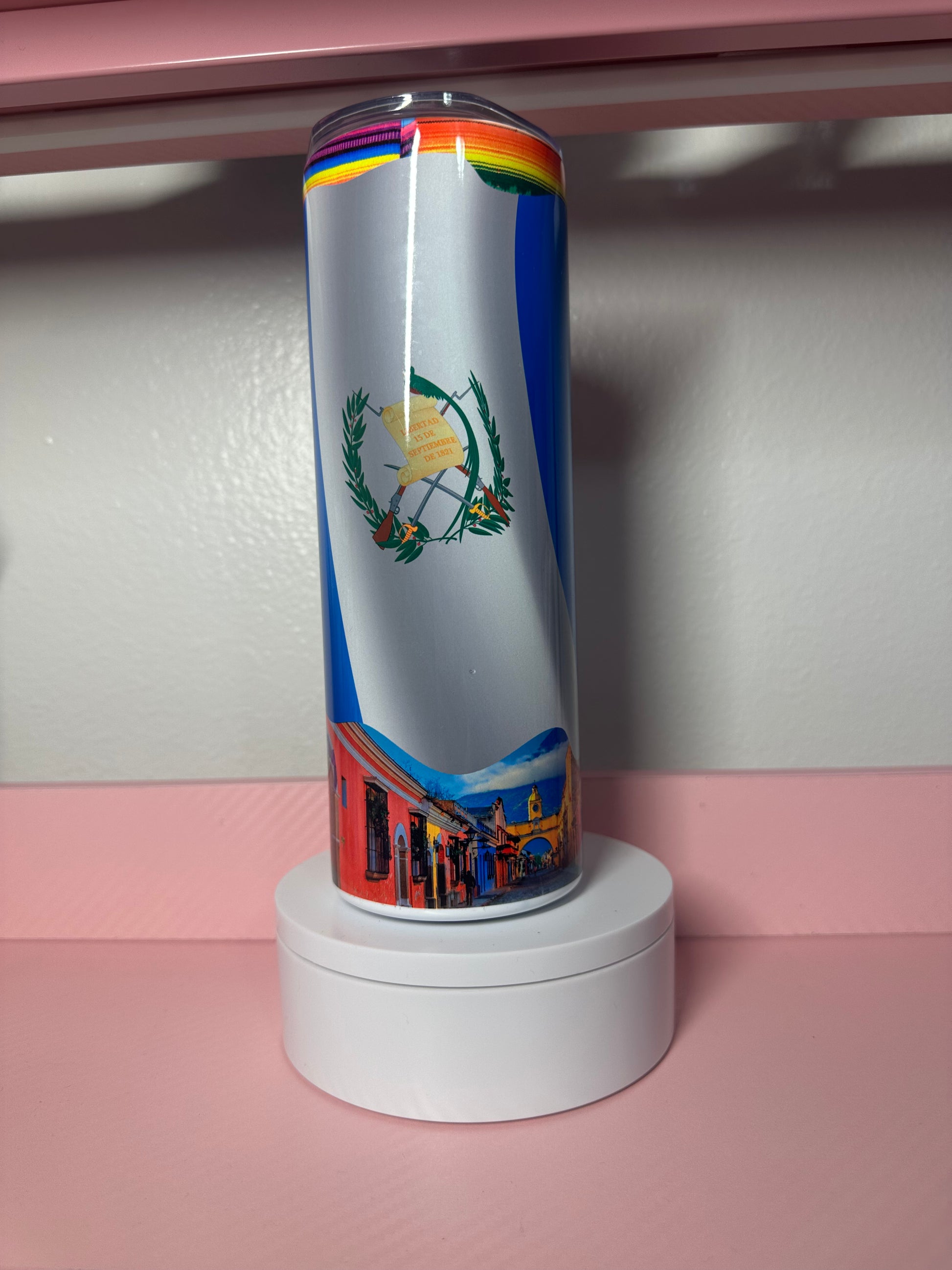 Celebrate your Guatemalan pride with this vibrant 20 oz tumbler featuring the iconic Guatemala flag design. Perfect for keeping your favorite beverages hot or cold throughout the day, this durable tumbler is ideal for coffee, tea, water, or any drink of choice. The bold flag colors make a striking statement whether you're at home, at work, or on the go. A meaningful way to show your heritage and connection to Guatemala.