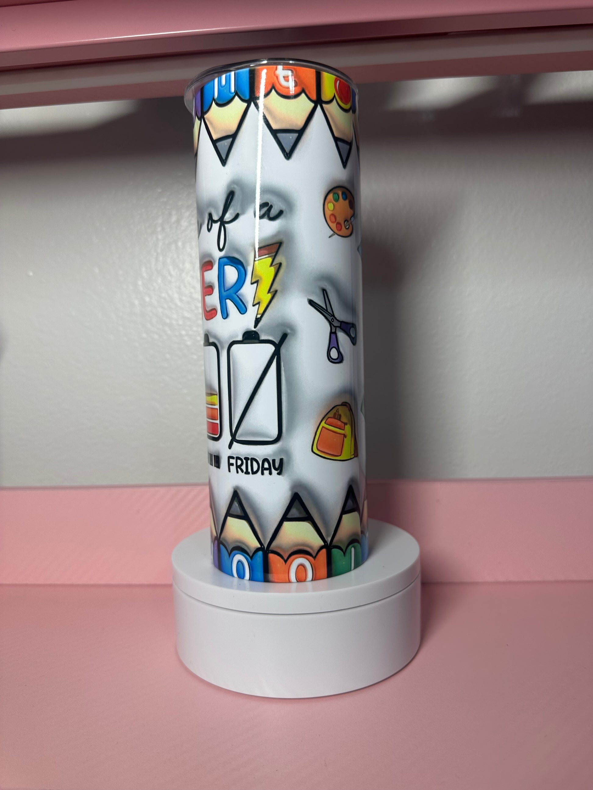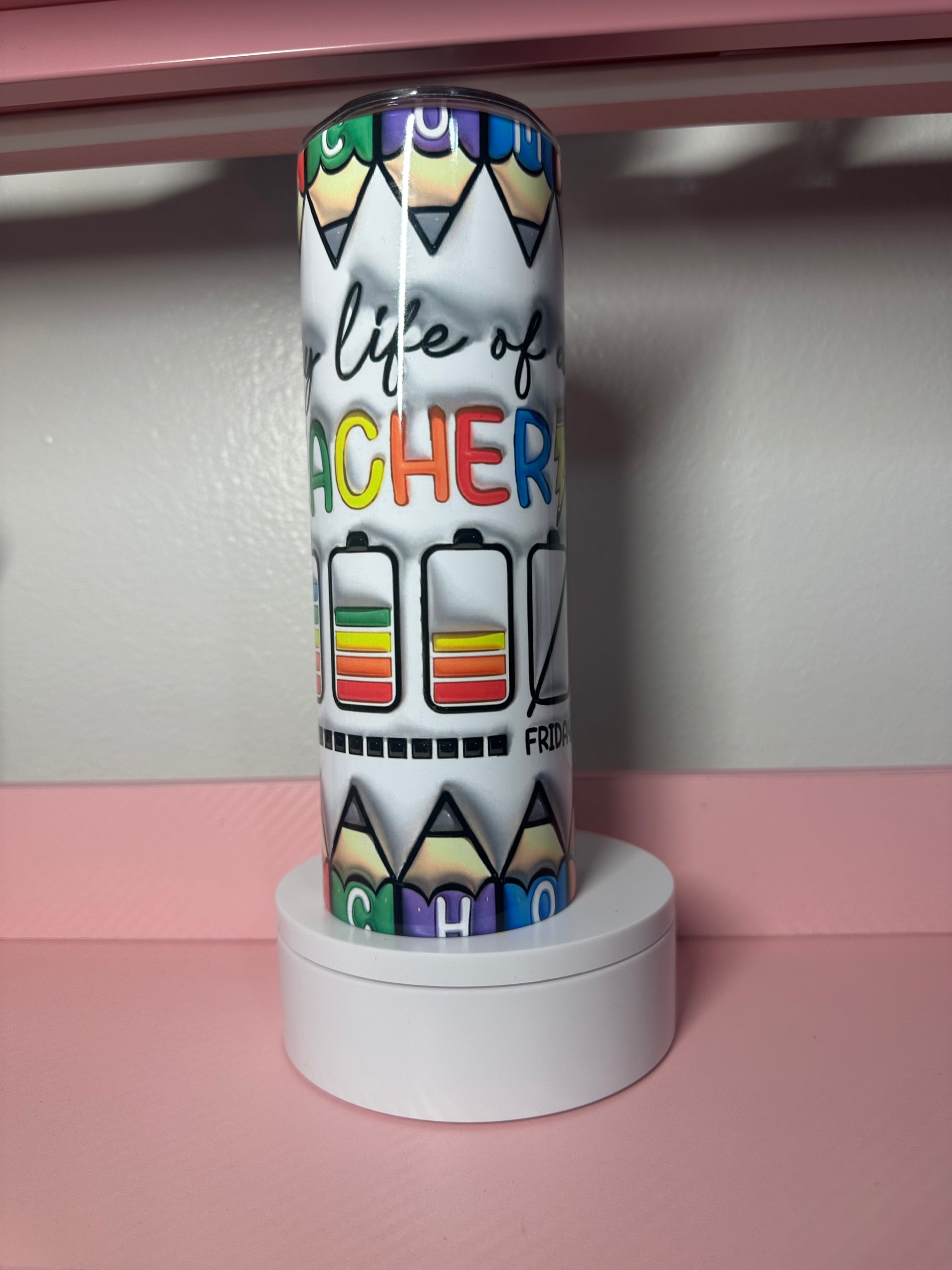 Perfect for the dedicated educator, this 20 oz tumbler celebrates the life of a teacher with style and function. Double-wall insulation keeps beverages ice-cold or piping-hot for hours, whether you're grading papers or leading the classroom. Includes a matching straw for convenient sipping throughout your busy day. An ideal gift for teachers who deserve a little extra appreciation.