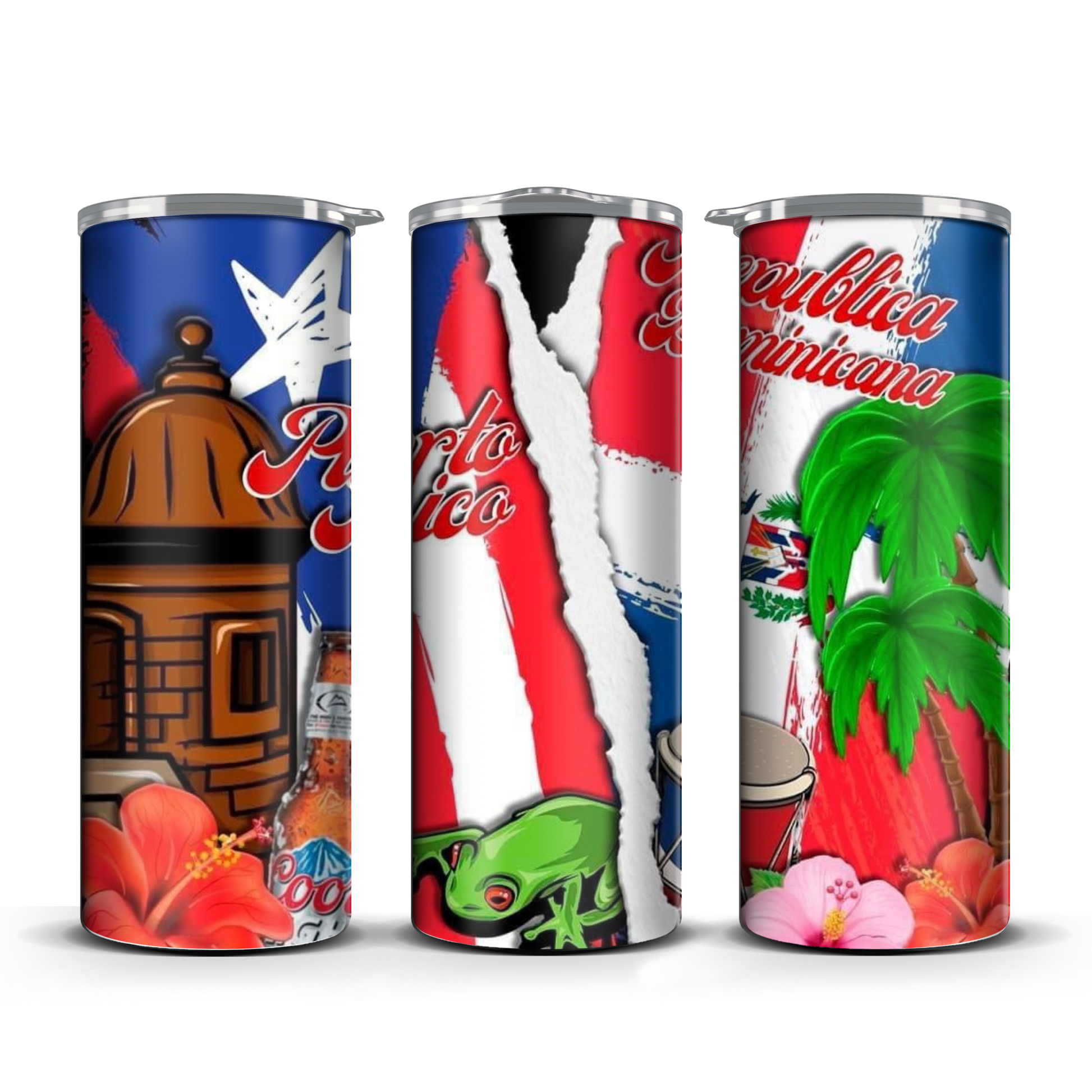Introducing our Puerto Rico and Dominican 20 oz skinny tumbler! Show off your heritage with pride while enjoying your favorite drink. Its sleek design keeps your drink at the perfect temperature and its durable construction ensures long-lasting use. Rep your roots in style!