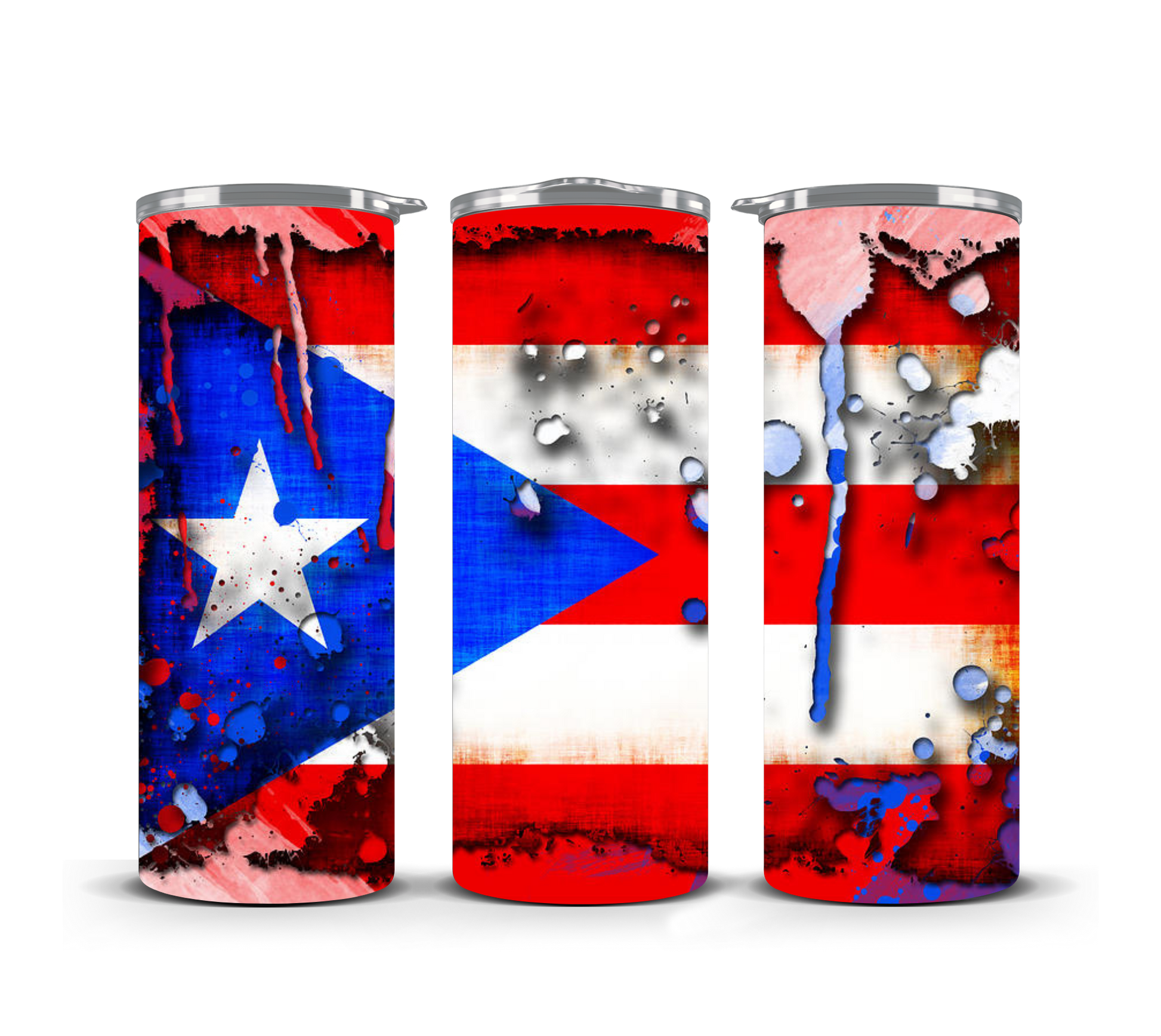 Show your patriotism with this 20 oz Rican flag tumbler. Its water damage design featuring the Puerto Rican flag is both stylish and functional. Enjoy your favorite cold drinks anywhere, as this tumbler is made with an insulation to preserve temperature. Represent the Rican pride!